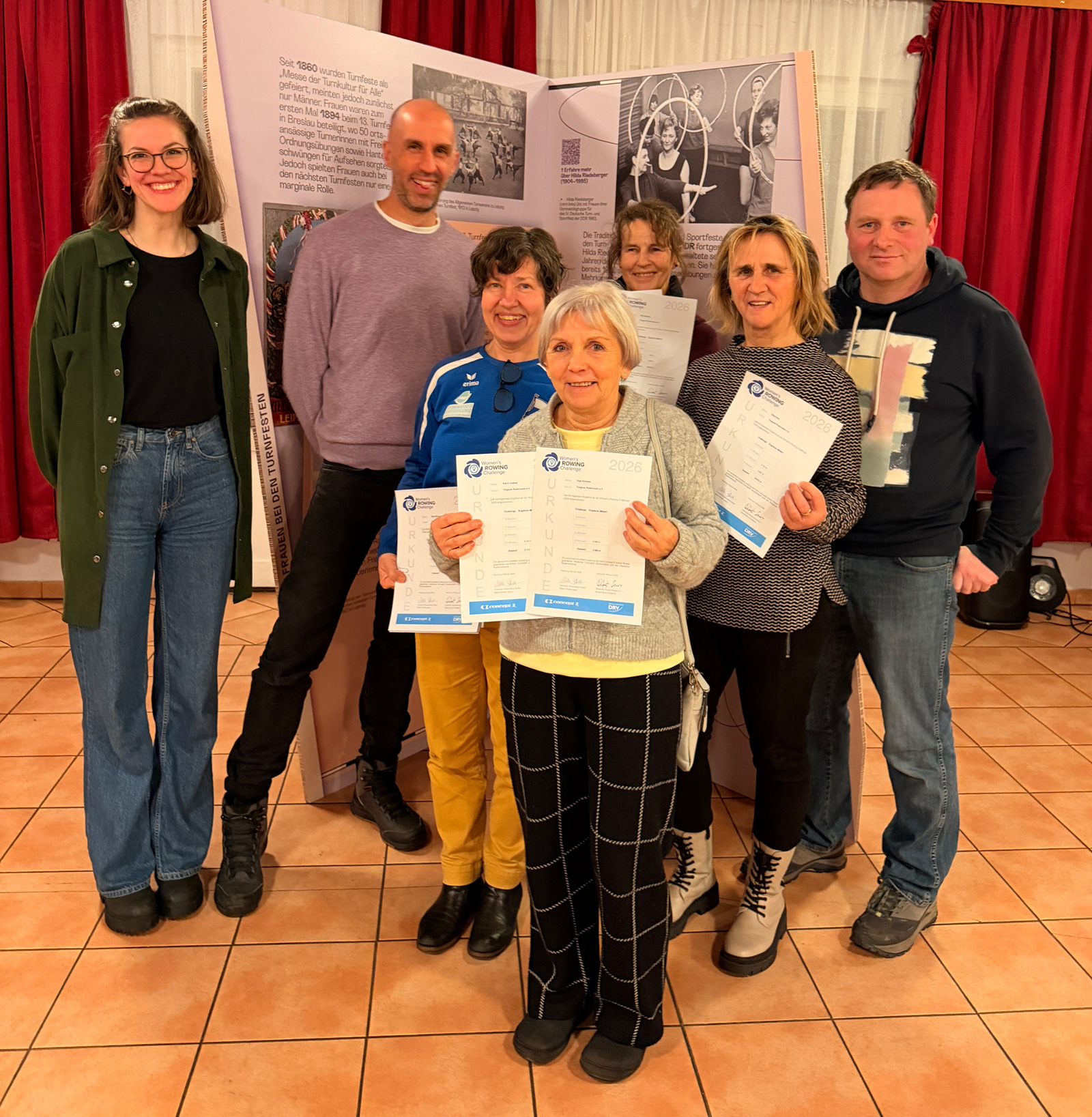 Passend zum Ausstellungsthema wurde im Rahmen der Veranstaltung auch die diesjährige Womens Rowing Challenge ausgewertet. Der Torgauer Ruderverein belegt mit 72 Ruderinnen und insgesamt 828.164 geruderten Kilometern einen starken 14. Platz in der Gesamtwertung von 215 teilnehmenden Vereinen. Im relativen Ranking (Gesamt Distanz/Mitgliederzahl des Vereins) haben wir nur knapp das Siegertreppchen verfehlt und sind dennoch sehr stolz auf den 4. Platz. An dieser Stelle ein großes Dankeschön an alle Teilnehmerinnen für euren Einsatz, den Teamgeist und die gemeinsame Freude am Sport in den vergangenen Wochen.